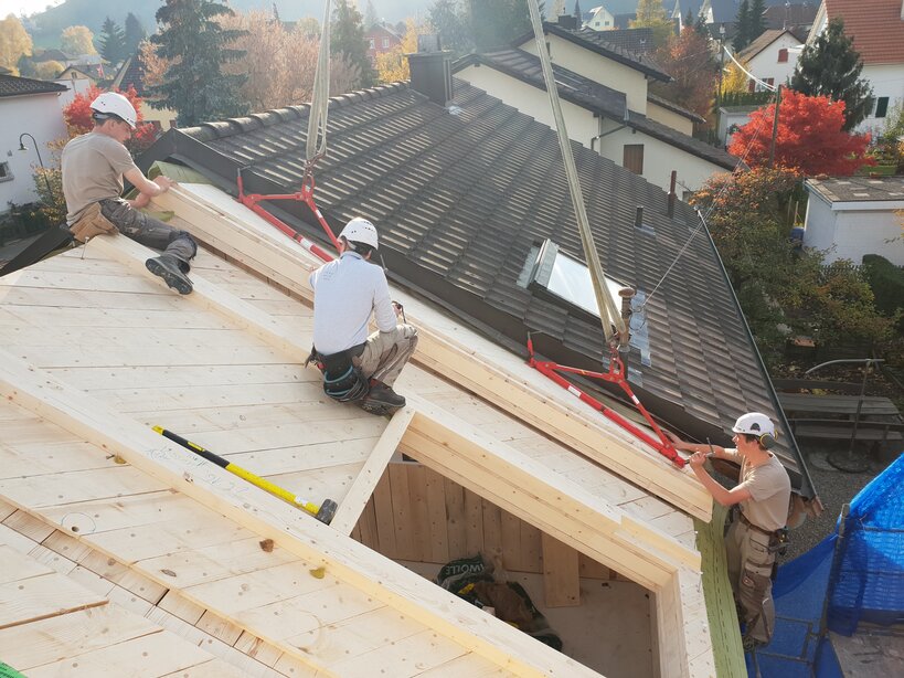 Beim Bau wurde darauf geachtet, dass die verbauten Materialien beim Rückbau möglichst einfach und sauber voneinander getrennt werden können (z.B. Holzfaser-Wärmedämmung aussen geschraubt anstatt geklebt). Durch den Einsatz von vorfabrizierten Elementen konnte die Bauzeit und die damit verbundenen Emissionen (Lärm, Staub, Verkehr durch Handwerker) stark verringert werden.