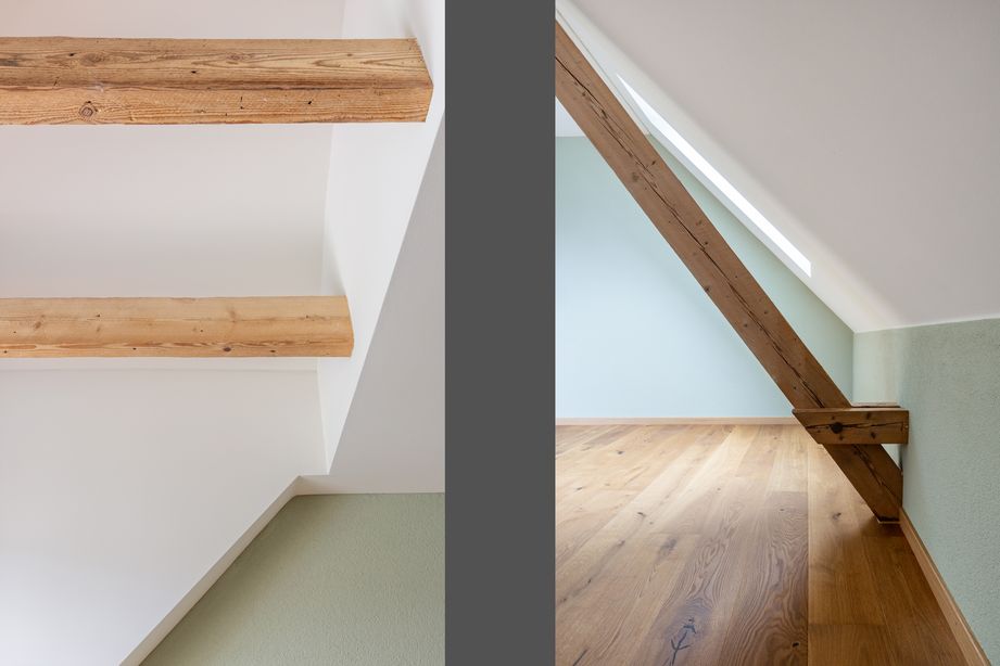 Im Rahmen dieses Projekts wurde das Dachgeschoss eines charaktervollen Altbaus umfassend saniert, um den Wohnkomfort und die Funktionalität deutlich zu verbessern. Die Ausgangssituation stellte eine Herausforderung dar, da die Zimmer im Dachgeschoss vor dem Umbau kaum behaglich waren und den modernen Ansprüchen an Wohnqualität nicht entsprachen. Ziel war es, eine wohnliche Atmosphäre zu schaffen, die sowohl gemütlich als auch grosszügig wirkt.