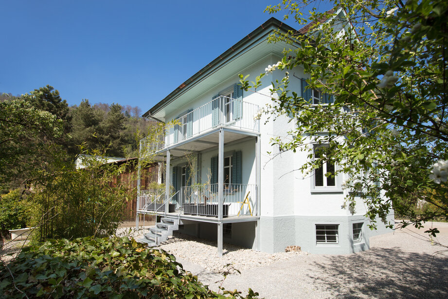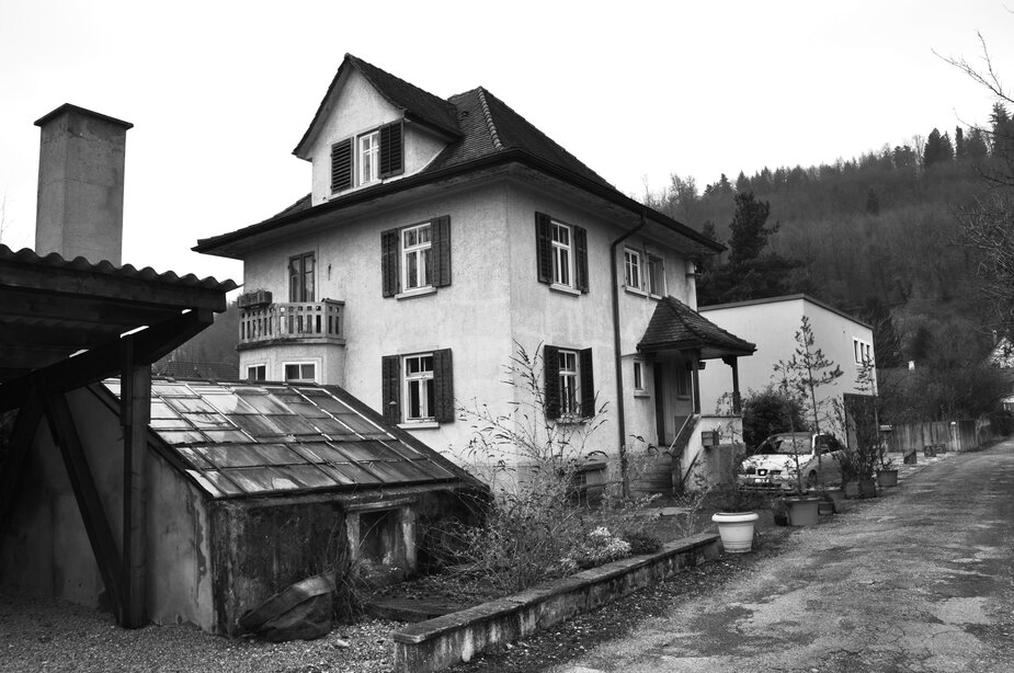 Durch den Rückbau eines Erkers aus den 60er Jahren wurde das Gebäudevolumen in den ursprünglichen Zustand zurückversetzt. Der Wohnwert der einfachen und funktionalen Mietwohnungen des Zweifamilienhauses wird durch eine neue zweigeschossige Balkonschicht auf der Westseite stark aufgewertet. Der direkte Zugang der Erdgeschosswohnung zu den alten Pflanzbeeten und Treibhäuser ermöglicht einen attraktiven Aussenraum.