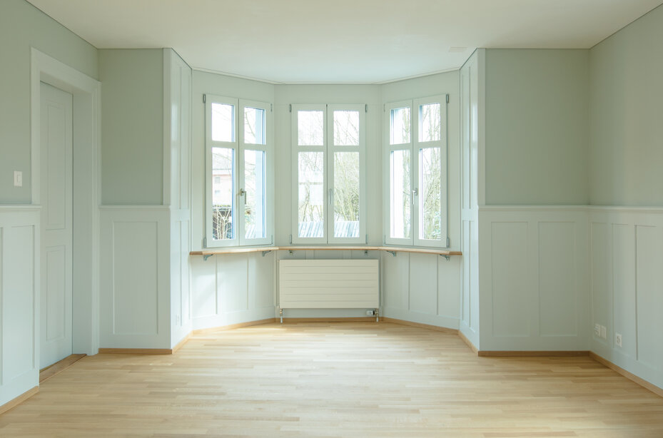 Durch einzelne, gezielte Massnahmen, konnte die Raumabfolge den Bedürfnissen heutiger Wohnungen angepasst werden, ohne in die bestehende Gebäudestruktur und Architektur einzugreifen.