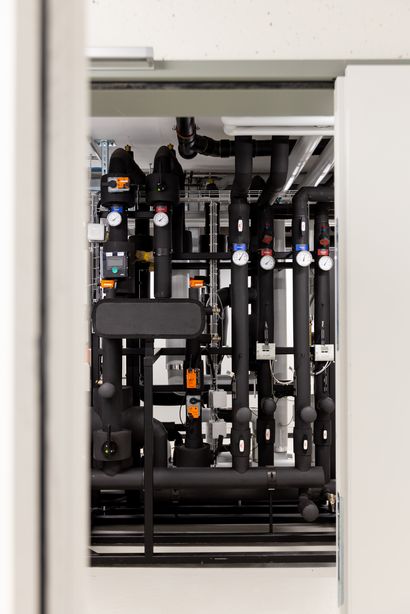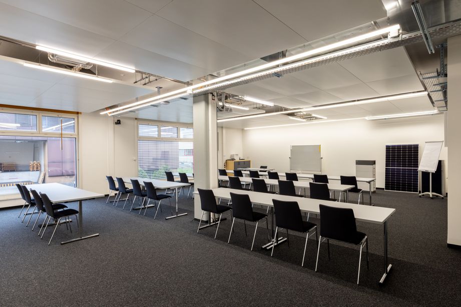 Im Untergeschoss befinden sich eine neue Technikzentrale zur Koordination aller haustechnischen Anlagen sowie eine Ausstellungsfläche für Solartechnologie.